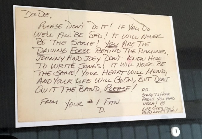 Fan mail protesting Dee Dee Ramone’s departure from the band.